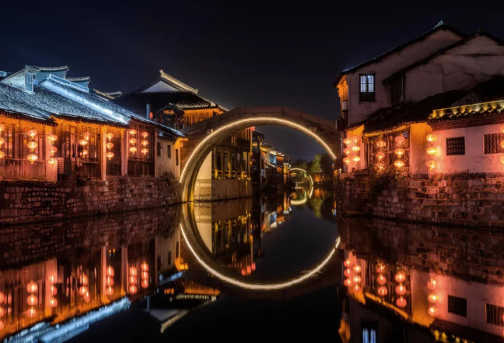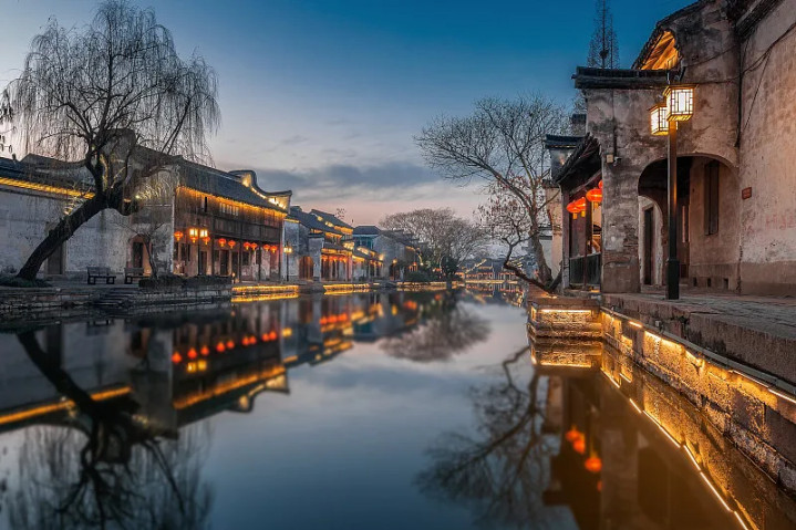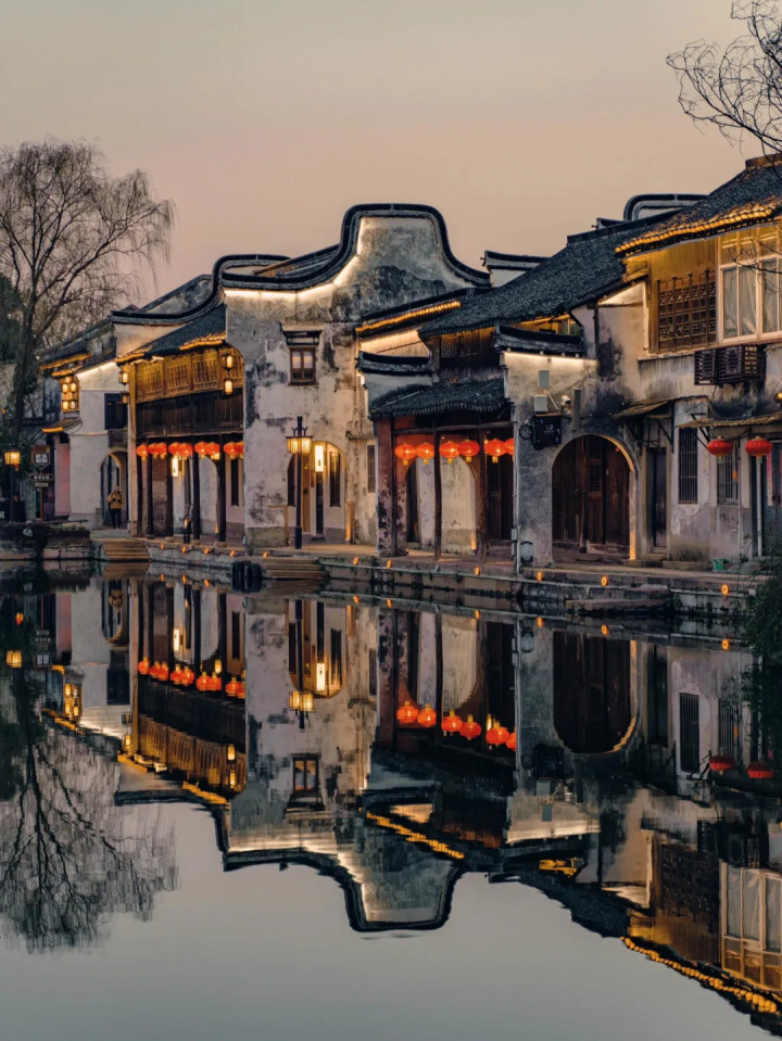 南浔古镇有万家火食沿河亮起,白墙黑瓦间游东说念主来了又去,处处透着古朴与宁静。