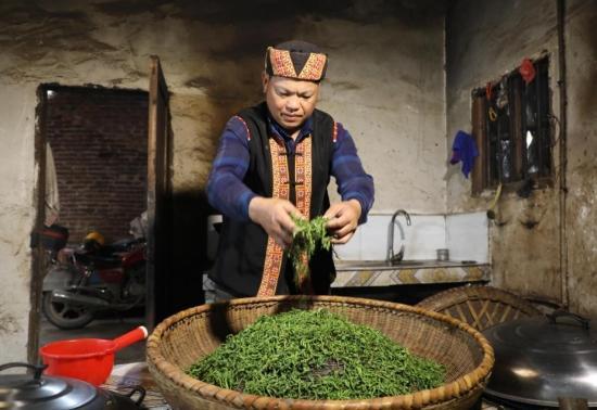 村民李英田要自家厨房的制茶作坊制茶。李月娟摄