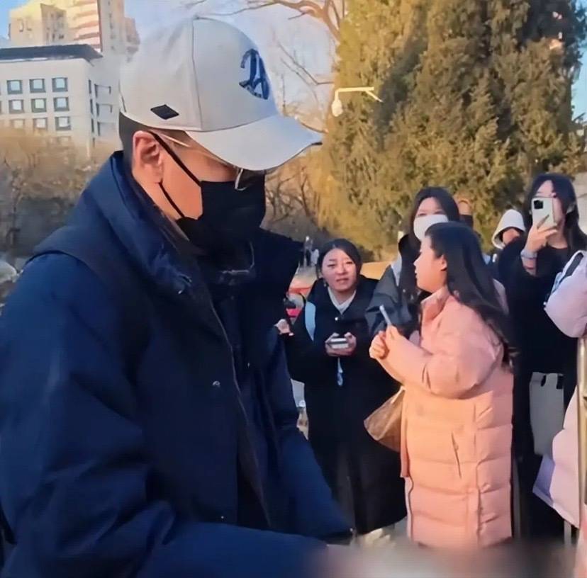 辛柏青一稔藏蓝色棉衣、戴着领巾口罩帽子,不思被世东谈主惊扰。蓝岛周围粉丝温存的目光,辛柏青照旧有些闪躲。