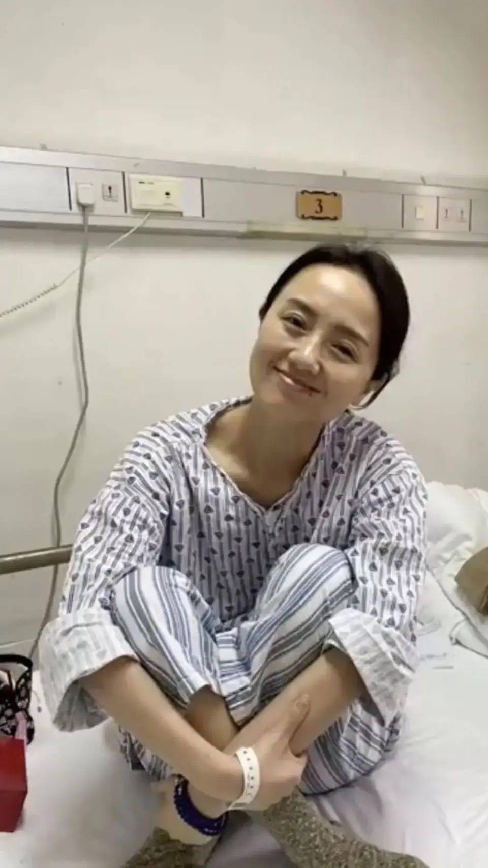 她一稔病号服,挽着头发、对着镜头暴露很厚重的笑颜。天然照旧很瘦了,但看着还挺有精神的。