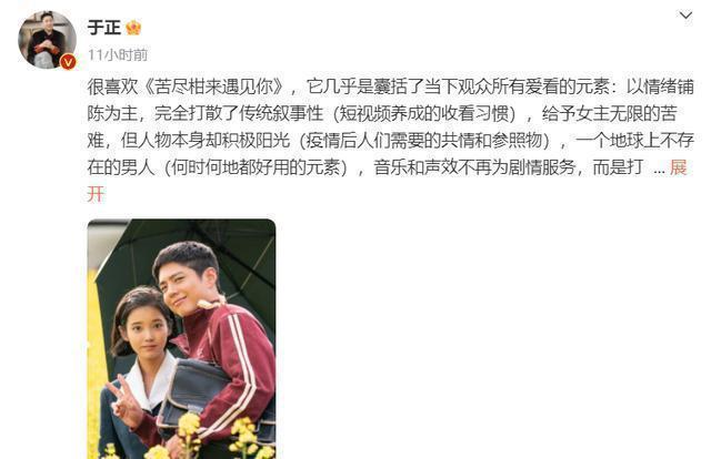 近日,于正在我方的酬酢账号发出音信,他示意我方很心爱《苦尽柑来碰见你》,因为这部剧囊括当下不雅众统共爱看的元素,给以女主无穷贫乏,但东说念主物自己却积极阳光,告成让不雅众和脚色产生共识。