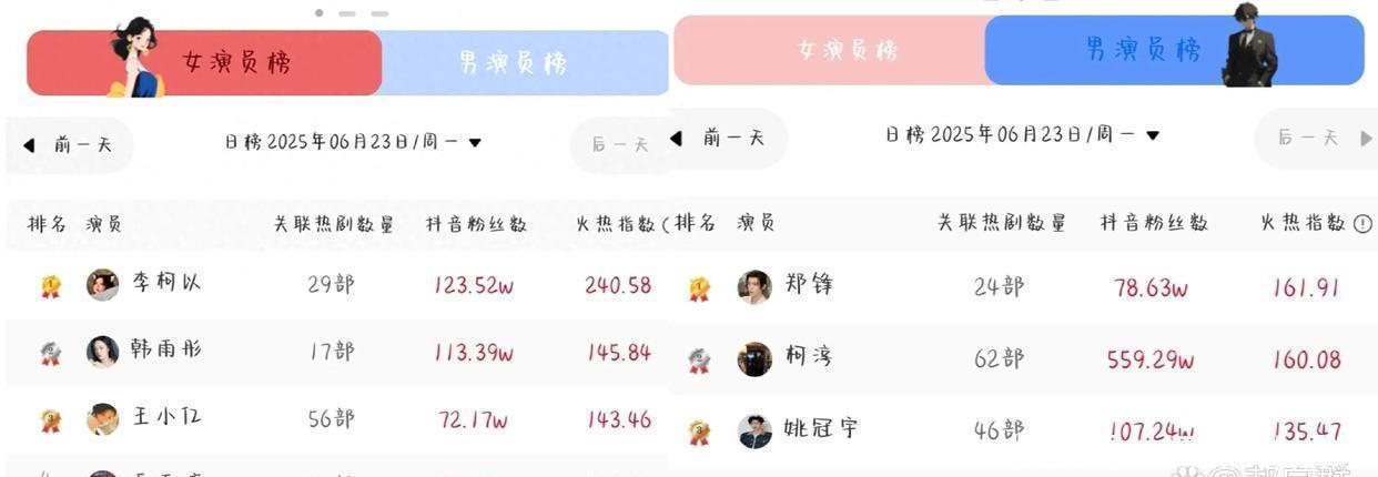 最近,短剧圈又炸锅了。俗语说“风水秩序转,演员榜单也翻天”。WETRUE最新短剧演员榜发布后开云体育,江湖好不吵杂,前有大将落马、后有黑马杀出。柯淳让郑锋给“挤”了下去,姚冠宇“保三争二”,王小亿青出于蓝,韩雨彤则偷偷卡位。谁在冲榜,谁被“按地摩擦”?谁凭啥登顶,谁只可插嗫?今天咱就咬文嚼字,挑这锅短剧里的“热锅蚂蚁”们逐一数,带你看清这些小戏院里的恩仇情仇。