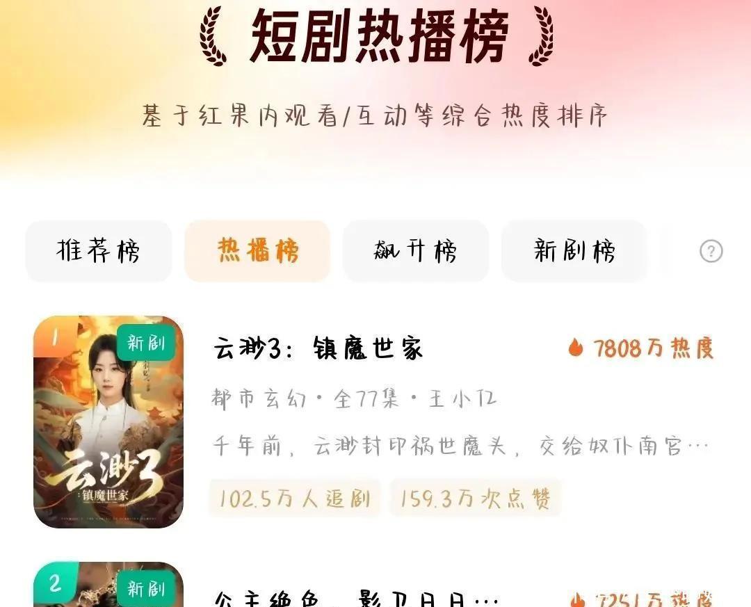 王小亿这波简直“卷”出新高度——你以为996很累?东说念主家这叫“新剧拚命三娘”。《云渺》系列仨字猛如虎,光热度我方就7800多万,两部主演剧拿下热播榜前两席,真实让敌手一个大喘息。背面“掌上珠”“认亲后误入帮派成团宠”,“名字长到让东说念主怀疑是外挂”,但光听就知说念投流得玩命砸了不啻一桶矿泉水钱。