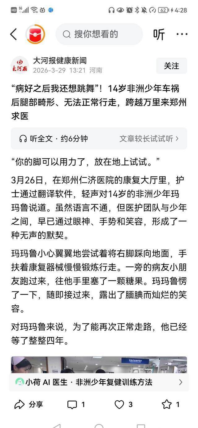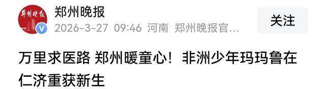 3月30日,一则14岁非洲少年在郑州吸收诊疗的新闻,在采集上掀翻山地风云。