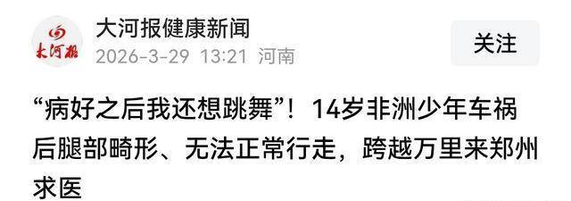 大河报:“病好之后我还思舞蹈”!14岁非洲少年车祸后腿部乖谬、无法经常行走,跨越万里来郑州求医