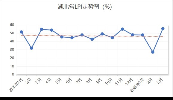 湖北日报讯(记者谢慧敏、通信员周旷祺)物流业景气指数,是反应物流业活跃度的首要筹算。4月9日获悉,3月份我省物流业景气指数为55.4%,重返膨大区间,创下近一年新高,较2月份环比回升28.3个百分点,高于寰球5.2个百分点。